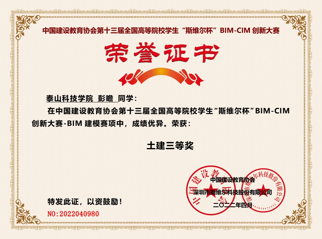 近日,第十三届全国高等院校学生“斯维尔杯”BIM-CIM创新大赛-BIM建模赛项获奖名单公布,永利集团88304土木工程(专升本)21级学生李开锐获土建二等奖、彭瞻获土建三等奖。