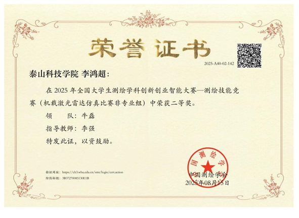 在本次大赛中,永利集团88304的学生们凭借扎实的专业知识和出色的实践操作能力,在众多参赛选手中脱颖而出。在无人机航测仿真比赛中,我院牛磊老师指导刘冠宇同学荣获国家一等奖,在数字测图仿真比赛中,韩澎涛老师指导苏若怡同学荣获国家二等奖,在机载激光雷达仿真比赛中,李强老师指导李鸿超同学荣获国家二等奖。这些成绩的取得,充分展示了我院学生在测绘领域的专业素养和创新能力。
