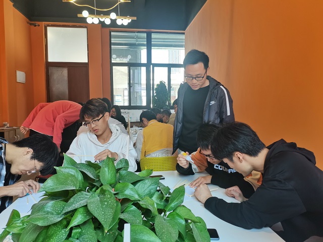 同学们制作过程中,筑梦未来建工社指导老师马栋来到活动现场。他亲自指导同学们完成制作,丰富的经验和耐心的指导让同学们的制作更加准确、迅速。马栋老师亲切的、悉心的教导,让现场氛围变得更加和谐、温馨。