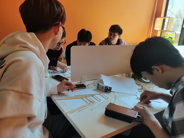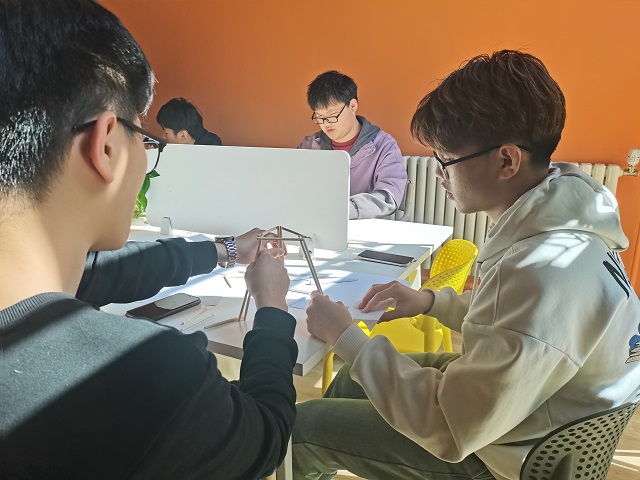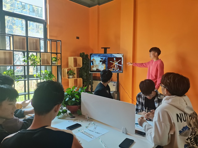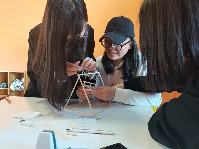 同学们热情高涨,纷纷将自己的想法告之小组成员。各小组分别从制作作品的难易程度、作品的精美程度、小组成员的分工等一系列问题展开激烈的讨论,达到共识后,有序的进行制作。其中,刘吉全同学所带领的小组准备挑战高难度作品埃菲尔铁塔。他们分工明确,三人协力合作完成作品。其中一名同学说到:“尽管在最后我们并没有得到预想的完美作品,但互帮互助的制作过程是我们整个活动最大的收获,我想这也正是这场活动的最有意义的地方吧。”