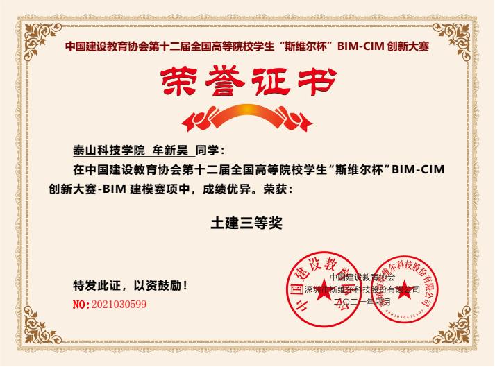 我院学子在第十二届全国高等院校学生“斯维尔杯”BIM-CIM创新大赛--BIM建模赛项中获三等奖