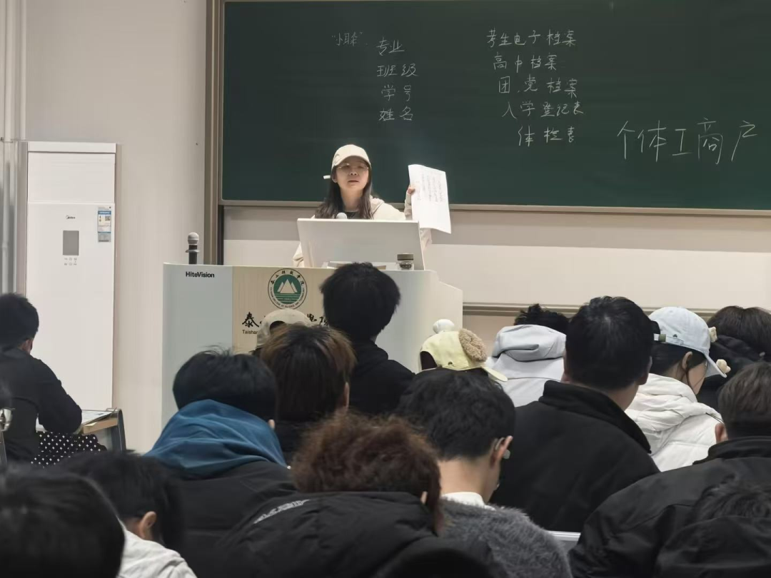 辅导员赵子璇老师为所带班级学生召开周末集中班会。会上,赵老师带领同学观看反诈宣传片,通报第九周出勤与归寝情况,强调严禁晚归翻墙、违规用电和校园全面禁烟,要求班委加强宿舍卫生自查和校外住宿核查。还强调入学登记表填写方式,明确下周严查公共区域吸烟。最后,赵老师叮嘱学生天冷添衣防流感,遇困难及时沟通。