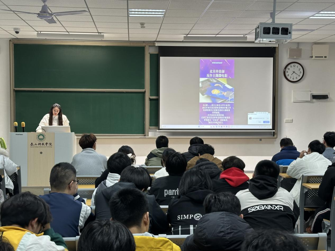 辅导员黄翰林组织所带领的全体学生在教室开展了安全教育周末集中主题班会。本次班会重点围绕网络安全展开,通过播放反诈主题微电影,以生动直观的方式向同学们揭示了当前高发的网络诈骗手段及其潜在风险。影片内容紧密贴合大学生活实际,有效提升了学生们对各类网络陷阱的识别与防范能力。