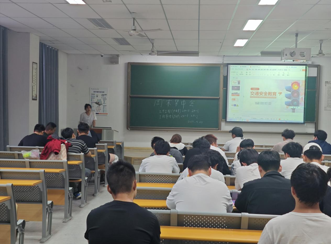 辅导员潘立婷老师于5月25日19:00,利用周末集中为工程管理(专升本)24-1、24-2以及土木工程(专升本)24-5、24-6召开校园交通安全主题班会。老师介绍班会主题,强调校园交通安全重要性,引出活动。1.展示案例:播放校园交通事故短视频、展示图片,分析事故原因,如违规骑行、不遵守交通标识等。2.法规科普:讲解校园内适用的交通规则,如行人靠右行、车辆限速等;介绍常见交通标识含义。3.同时一位同学以宿舍真事发生的交通事故作为案例,供同学们警醒。最后,潘老师总结重点,提醒同学养成良好交通习惯,注意交通安全。