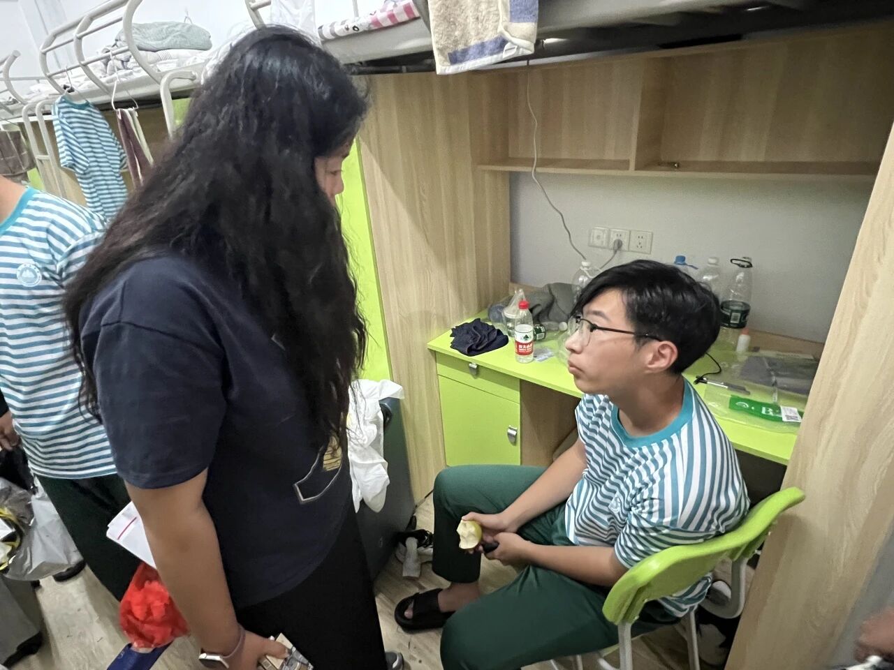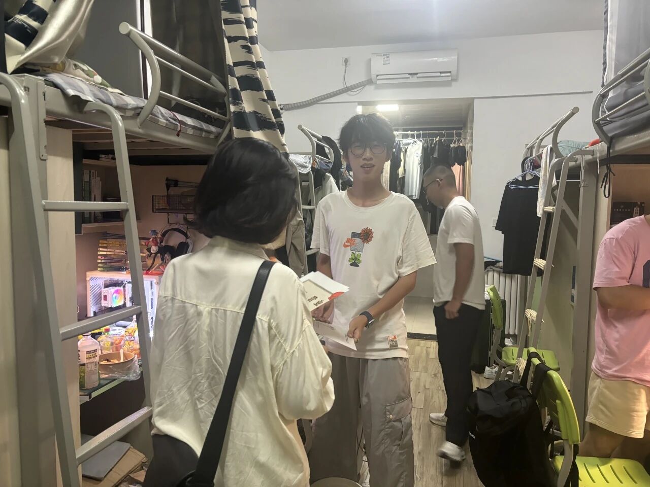查寝过程中,辅导员老师们向新生致以热烈的欢迎与诚挚的问候,并鼓励大家在接下来的日子里能够携手并进,相互帮助,以开放包容的心态迅速融入这个全新的大家庭。辅导员老师们重点对宿舍的用电安全、防火防盗措施以及卫生状况进行了细致入微的排查。他们逐一走访了每间宿舍,仔细检查了电线、插头等用电设备是否安全合规,同时提醒同学们注意个人财物的保管,确保宿舍门窗锁好,防止盗窃事件的发生。此外,对于宿舍的卫生状况,辅导员老师们也给予了高度关注,鼓励同学们保持良好的生活习惯,共同营造一个干净、整洁的居住环境。