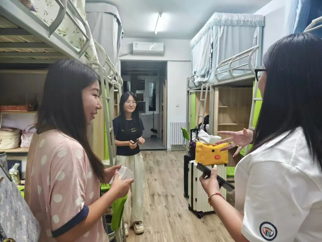 在安全排查环节,对宿舍内的电源插座、插线板、行李箱及储物柜等重点区域进行逐一检查,仔细查看是否存在违规使用“吹风机”“电煮锅”等违禁电器的情况,同时提醒新生妥善存放个人贵重物品,保持宿舍通道畅通避免堆放杂物引发安全问题。对于部分宿舍存在的卫生死角,辅导员们现场指导新生整理收纳鼓励大家共同维护宿舍环境养成良好的生活习惯。