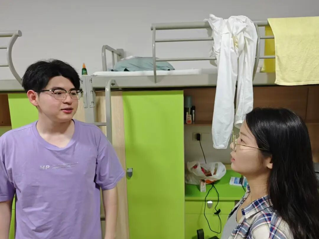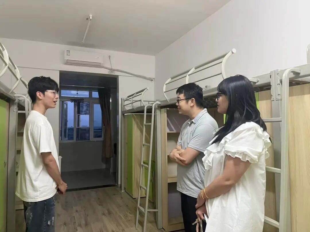 辅导员前往各新生宿舍,通过点名核对,统计每间宿舍实际入住人数,对临时外出的新生确认去向与返校时间做好详细记录。刘睿智副院长与新生亲切交流,询问他们的住宿适应情况、饮食是否习惯、是否还有什么困惑,面对新生提出的“校园网网速较慢出现卡顿”“热水器使用流程不熟悉”等问题,他当场记录,并安排相关负责人尽快协调解决,确保新生诉求“事事有回应、件件有着落”并叮嘱新生要尽快熟悉宿舍规章制度提高安全防范意识,尤其注意用电安全,坚决杜绝使用大功率电器。