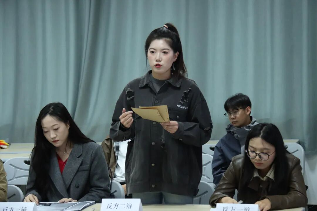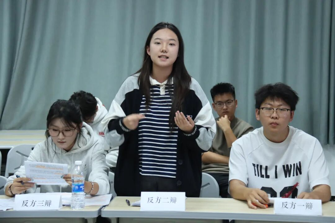 开篇立论环节,正反双方辩手清晰搭建观点框架、条理分明阐述立场。随着比赛的进行。双方辩手在攻防转换间反应迅速,面对对方突然抛出的新角度论据,不仅没有慌乱,反而迅速抓住逻辑关键点展开反驳,精彩的临场发挥将现场气氛推向顶点,充分展现了辩论赛的思辨魅力与竞技乐趣。