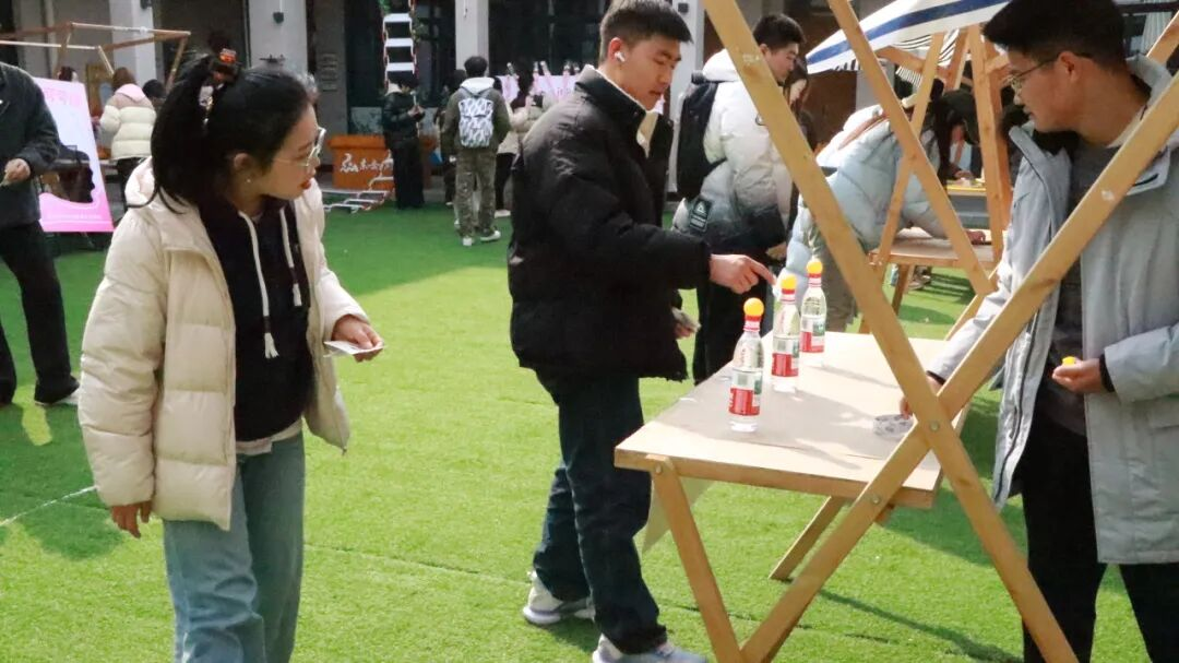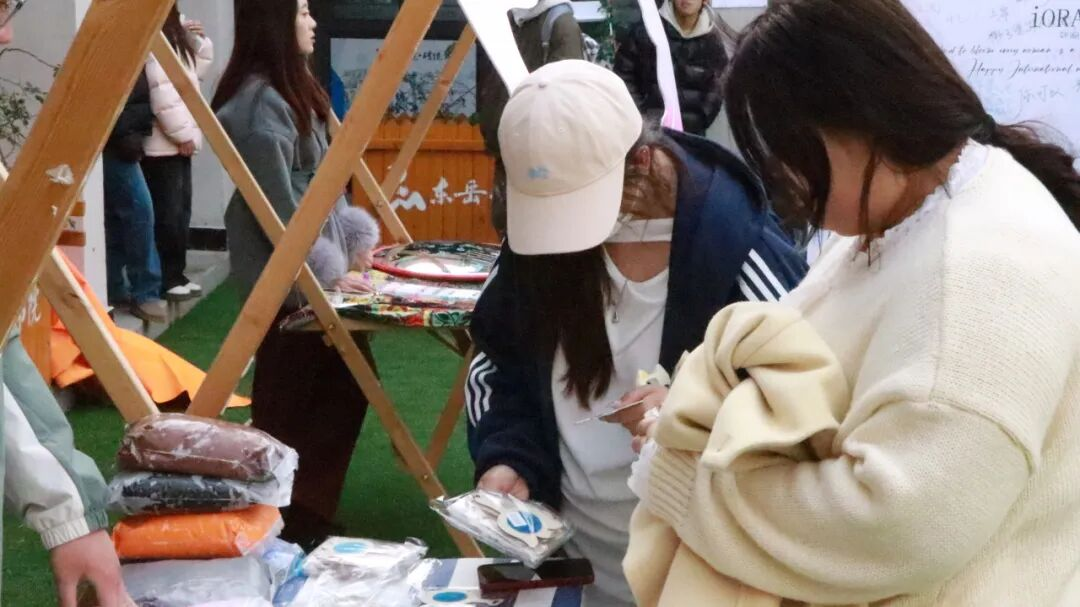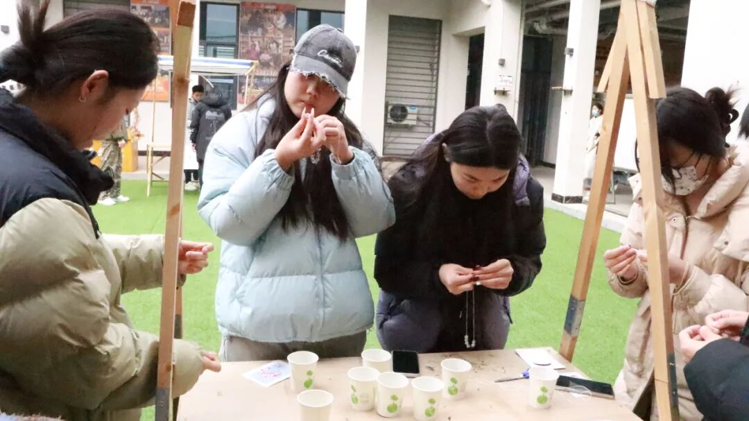 现场设置体验区的摊位前,排队的人一波接一波,虽然是女神节活动,但现场也吸引了不少男生参与其中。女生大多喜爱手工,DIY幸运手链的串珠区人气爆棚。五彩斑斓的珠子在阳光下闪烁着迷人的光芒,参与者纷纷挑选出心仪的珠子,小心翼翼地穿成独一无二的手链,串起了对自己满满的祝福:“紫色代表幸运、粉色代表浪漫、白色代表理智、蓝色代表神秘,我要把这条手链送给自己,希望自己永远开心!”其中有人这样说,其他女生也纷纷点头表示认同,虽然来自不同学院,但这一刻,女孩子之间共鸣的体验感瞬间爆棚。