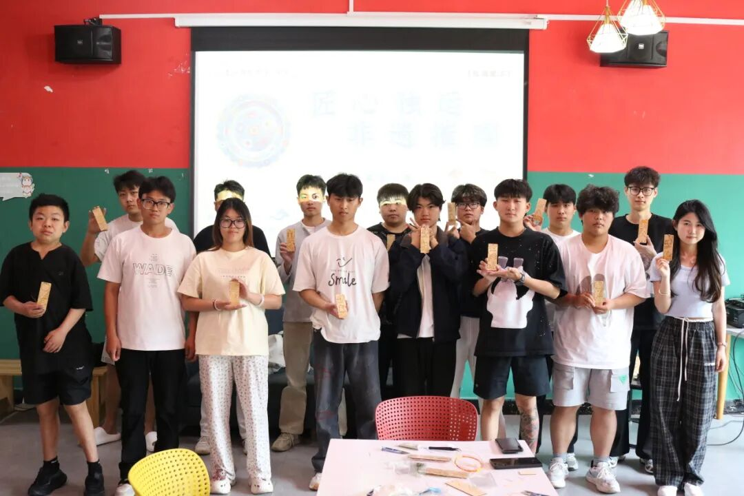 活动结束后,全体参与人员进行了合影留念。在合影中,同学们手中高举着自己精心制作的作品,脸上洋溢着自豪与喜悦的笑容。那一张张灿烂的笑脸,与色彩斑斓的掐丝珐琅作品相互映衬,构成了一幅充满活力与文化气息的画面。这不仅是同学们学习成果的展示,更是对非遗文化传承与创新精神的生动诠释。