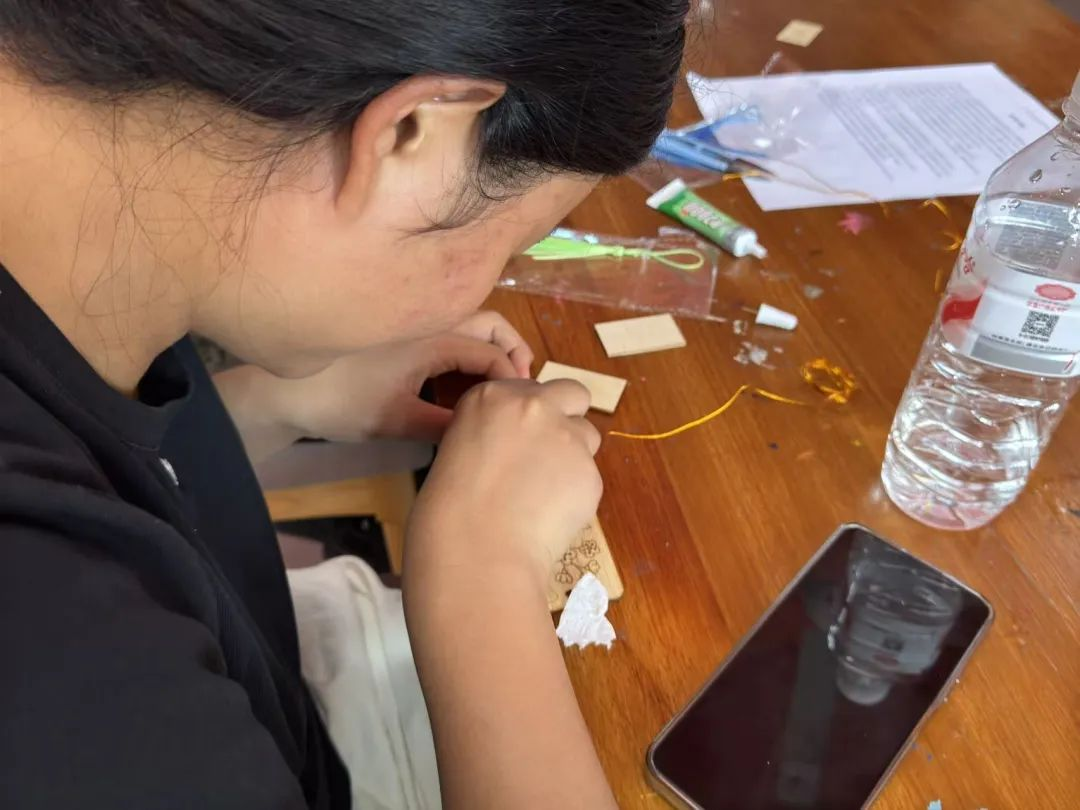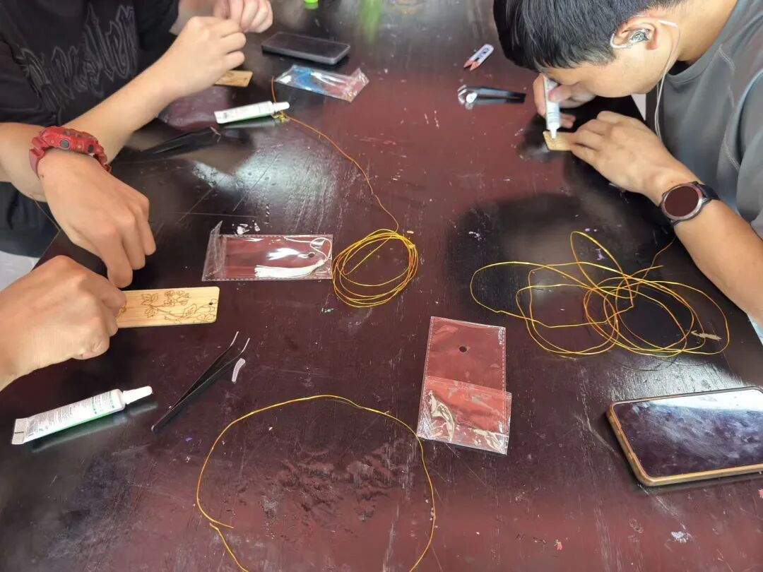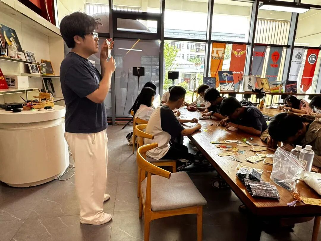 活动当天,炙热的阳光洒满校园,空气也变得颇为燥热。可艺术团的成员们却已早早的准备好了材料布置下了教室,不多时候,参加活动的同学也是陆续的到来了,看着如此新颖的少见的材料,同学们眼睛也是于此亮了光来。接下来便是艺术团的林子祥同学向同学们展示了何为掐丝珐琅,同时又该如何去制作掐丝珐琅。
