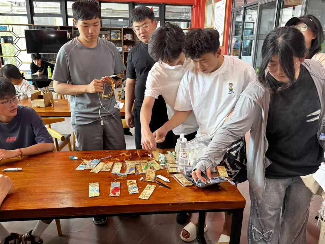 活动已是接近尾声。同学们执金丝为笔,以珐琅釉为彩,作品也一一的展现了出来。不同的风景,不同的山水,充斥着国风文化的浪漫。掐丝珐琅穿越时光长河,闪烁极致的浪漫和美感。时代在改变,但人们对美的渴望却不会减少分毫。从柔软的铜丝。到五彩斑斓的掐丝珐琅。这份魔法般的转变。让我们真切的感受到民间艺术的智慧。这不仅仅是一次社团的活动,这更是对非遗文化传承所贡献的一小份力量。这不光是一门手艺,也同样代表着中国传统文化的浪漫,我们能做的不只是去学会它,而是去传播它。让这一份历史文化能够真正的做到源远流长!