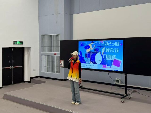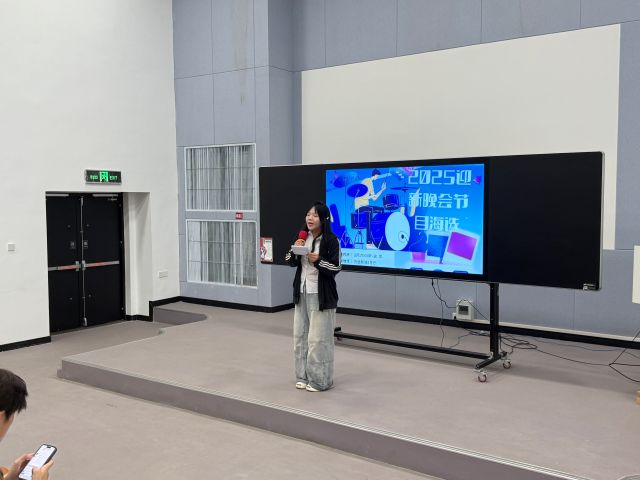 活动准备阶段,组织者对6号厅内的灯光进行了调试,舞台中央摆放着一块醒目的“迎新晚会海选”背景板。活动开始后,主持人潘思宇同学流畅地介绍了海选流程。此次海选分为主持人选拔和歌唱比赛两部分。
