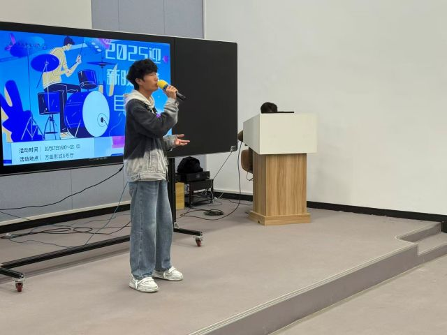 主持人海选环节结束后,歌唱比赛随即登场。三位同学带着精心准备的曲目轮番开唱,将现场氛围推向高潮。黎仁卓同学演唱《那是你离开了北京的生活》,在舒缓的钢琴伴奏下,他略带沙哑的嗓音细腻地诠释出歌曲中的情愫;董晓申同学带来《天外来物》,前奏响起便引发现场欢呼,他将“你像天外来物一样求之不得”的复杂情感展现得淋漓尽致,高潮部分高音稳定有力。