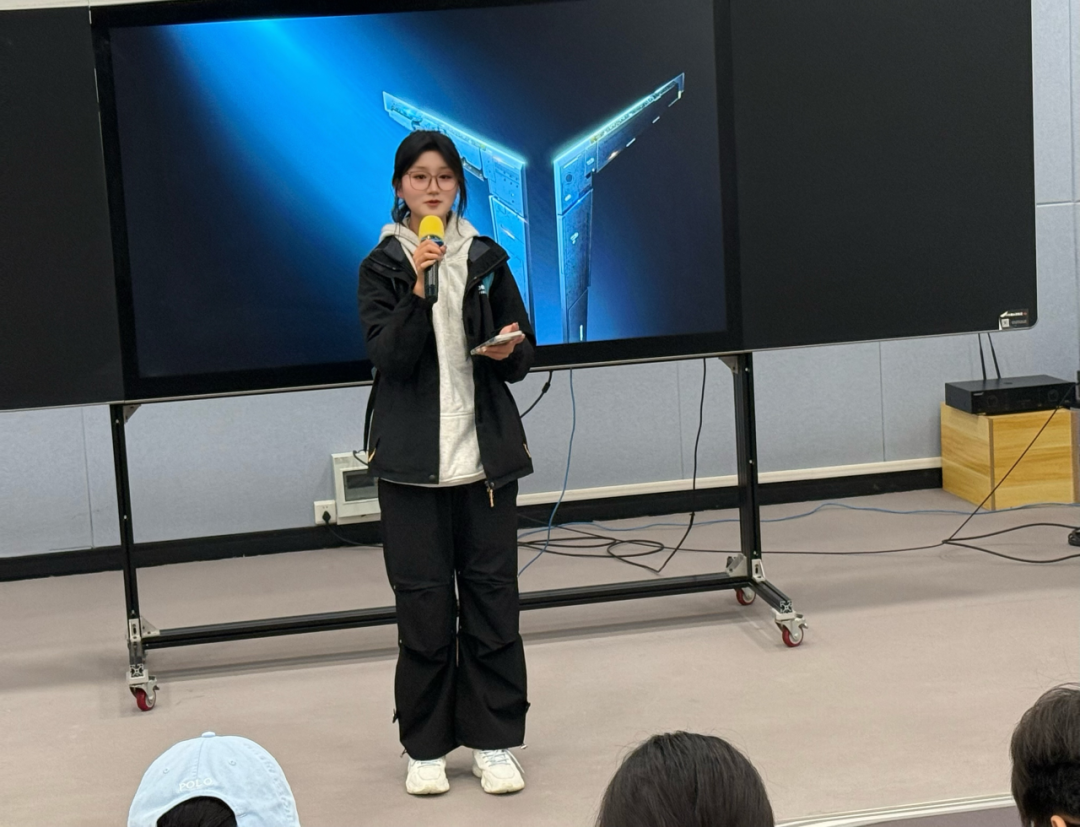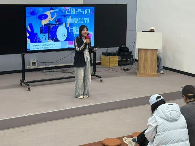 陈佳怡同学聚焦“活力主持”,让舞台气氛愈发活跃。她模拟晚会互动场景,演示如何用幽默的话术调动观众情绪,展现出极强的应变能力。