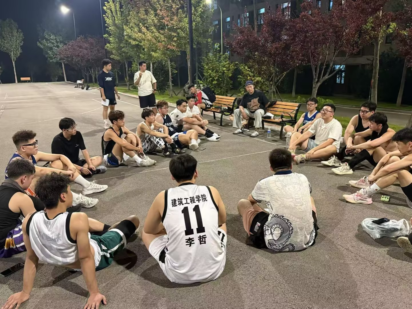 开赛前,建工的“篮球火种”已在瞻岩球场点燃。夕阳下的球场,永远有他们奔跑的身影——是运球突破时球鞋与地面摩擦的“吱吱”声,投篮命中时篮网清脆的“唰唰”声,还有教练铿锵有力的战术指导声,坚定而又热血。面对新生球员技术不对称的问题,教练组量身定制“分层训练计划”:每天1-2小时的基础打磨,从运球变向到篮板卡位,每一个动作都重复百遍,“1V1对抗”“全场5V5模拟赛”。每一处细节地打磨,让球员们在训练中逐渐探寻到配合的默契。