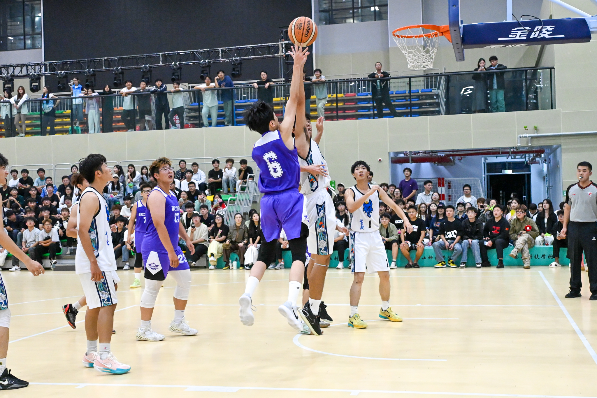 进入半决赛,对手实力显著提升。对阵行政管理学院时,比赛刚开始便进入了白热化阶段,每一个球都关乎着胜负。比赛最后时刻,后卫郑凯泷按照磨合过的“快攻路线”,迅速将球传给埋伏在三分线外的黄家栋。黄家栋凭借训练中打磨的投篮手感,命中关键三分,全场沸腾,建工成功进入决赛!