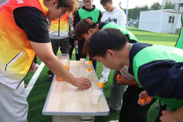 团队协作的篇章,更是将现场的热烈推向顶峰。群龙取水的挑战中,队员们手臂相挽成桥,呼吸与共为弦,信任在指尖流转,将分散的力量拧成一股绳,共赴目标;仰卧起坐传球时,大家伴随自己的节奏起身、传接,小球在指尖流转的瞬间,是体能的较量,更是默契的共鸣,笑声与呐喊交织,织就一张欢乐的网;企鹅漫步堪称全场“高光时刻”,同学们夹球模仿企鹅憨态,摇摇晃晃的步伐里满是童趣,引得观者捧腹,赛场化作一片欢乐的海洋;肺活量吹球挑战赛中,深吸一口气的蓄力、小球滚动的轻盈,新奇玩法让每个人都卸下拘谨,在纯粹的快乐里拥抱运动的魅力。