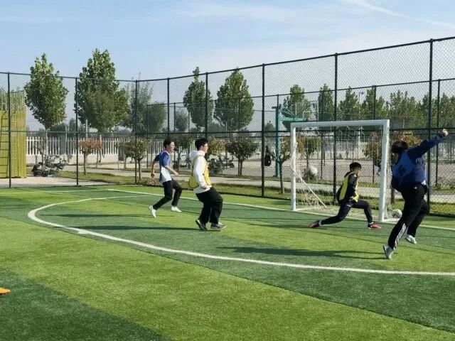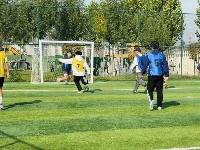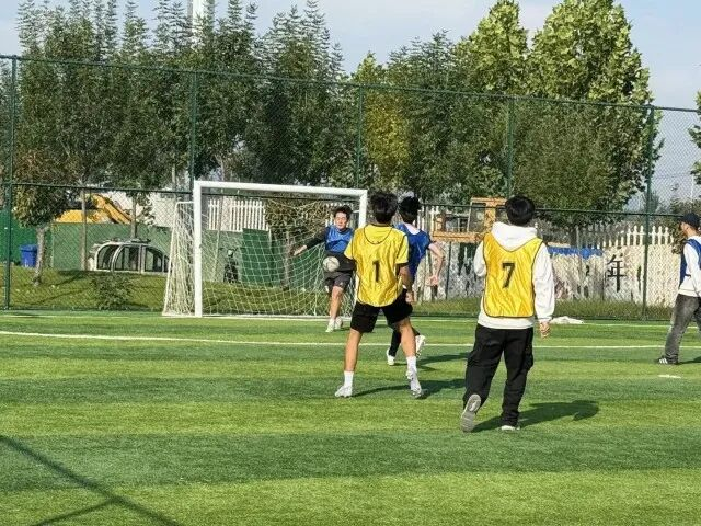 在这场比赛过程中,双方队员你来我往,激烈角逐。中场区域的争夺尤为激烈,双方队员在这里展开了速度与技巧的较量,每一次球权都让场边的观众屏息凝神。新生队的同学们在比赛中不断学习、成长,逐渐找到了与队友配合的节奏,努力向对方球门发起冲击;老生队的队员们则稳扎稳打,用经验和实力应对着新生队的挑战,整个赛场充满了紧张又欢快的氛围。