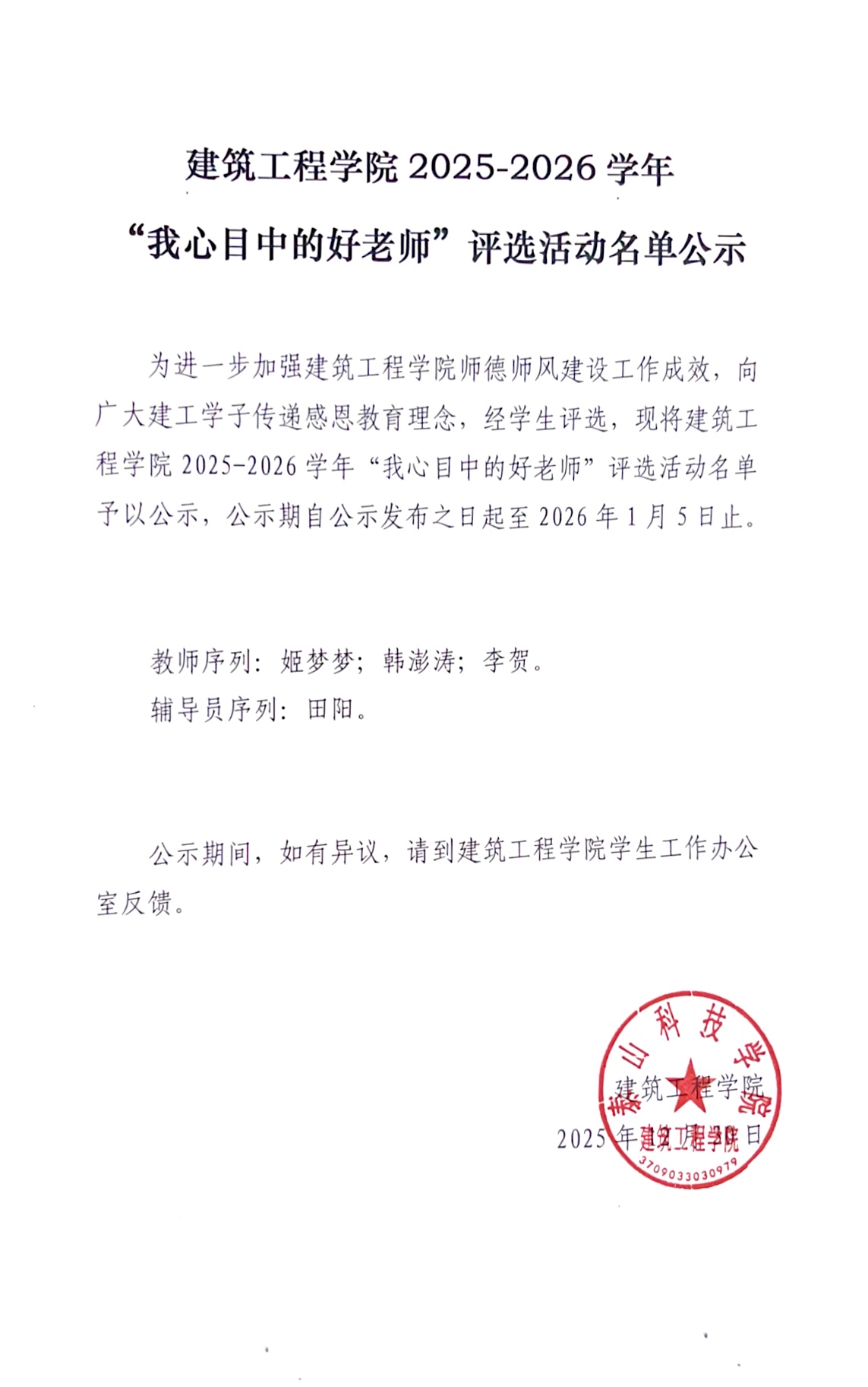 永利集团883042025-2026学年“我心目中的好老师”评选活动名单公示