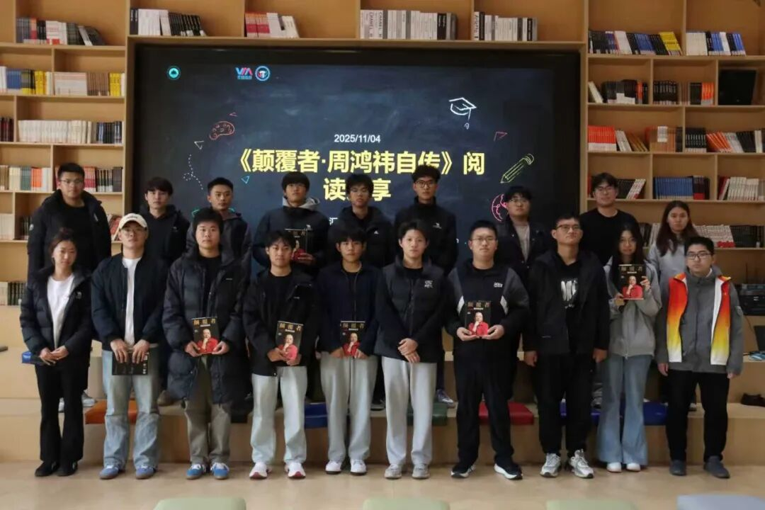 随着阅读与故事构思环节的结束,活动迎来尾声。同学们纷纷手捧《颠覆者・周鸿祎自传》,在活动大屏幕前整齐列队,留下了一张意义非凡的合影。镜头里,书本封面的“颠覆者”三字格外醒目,同学们的笑容里满是收获的喜悦——这不仅是对本次阅读活动的纪念,更是对“敢于突破、追求成长”青春态度的定格。