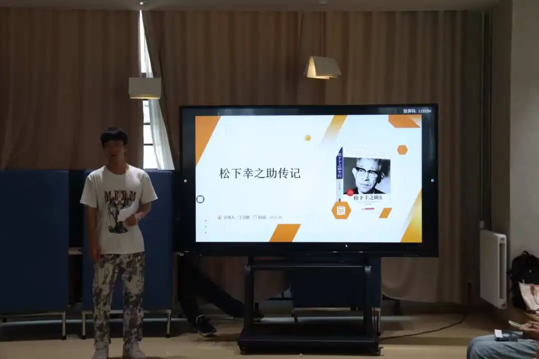 活动伊始,主持人张予泽热情开场,向参与同学介绍活动背景与流程,强调从商业经典中挖掘灵感、赋能专业学习的意义,迅速拉近大家与活动主题的距离。随后,丁召鹏学长作为分享嘉宾,围绕《松下幸之助》展开深入解读。他从松下幸之助的早年生活讲起,分析松下幸之助成长过程,剖析其经营理念中对社会价值、用户需求的关注,结合松下电器发展历程中的经典案例,阐释经营哲学如何转化为商业实践成果。学长生动且富有深度的分享,让同学们透过文字,真切触摸到商业领袖的智慧脉络,现场不时响起专注聆听的沙沙笔记声。