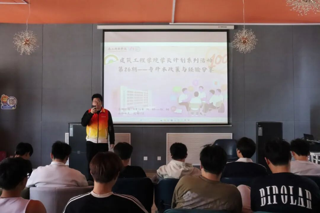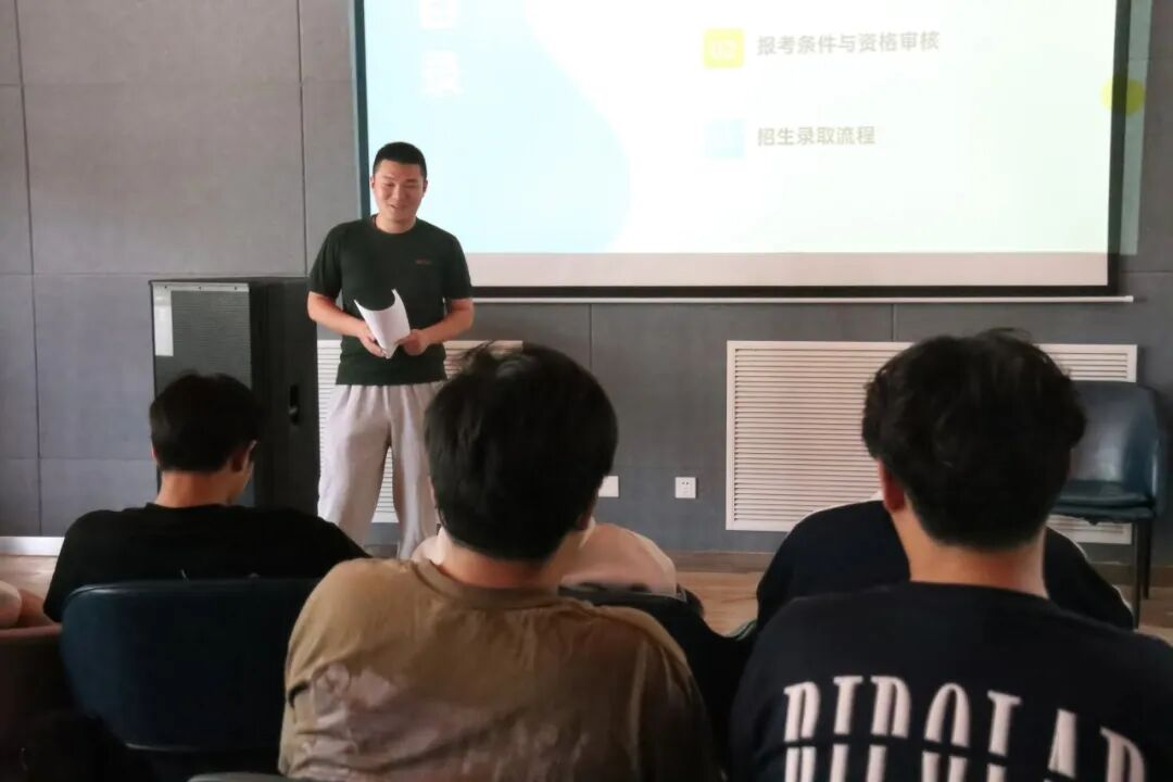 活动中,范承尧学长围绕专升本政策要点与备考策略展开系统性分享,详细地向在场的学弟学妹们展示了如何有效地准备专升本考试。针对备考动力不足问题,范承尧学长通过举例鼓励同学们将长期规划拆解为可执行的每日任务,用“渐进式”成长焦虑。李鸿瑞学长则分享退役士兵专升本情况,为同学们介绍很多退役军人的专升本的优惠政策。两位学长的宝贵经验分享,为有志于专升本的同学们指明了方向,提供了实用性的指导,助力他们在专升本的道路上稳健前行。