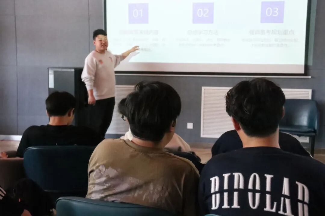 在热烈的掌声中,学习部干事张予泽担任主持人角色,以“梦想从不辜负追光者”作为开场白,点亮活动主题:“希望通过学长的经验分享,让大家少走弯路,以更坚定的步伐迈向升本考场。”随后,范承尧学长走上讲台,用亲切的问候迅速拉近与学弟学妹们的距离,分享会正式拉开帷幕。