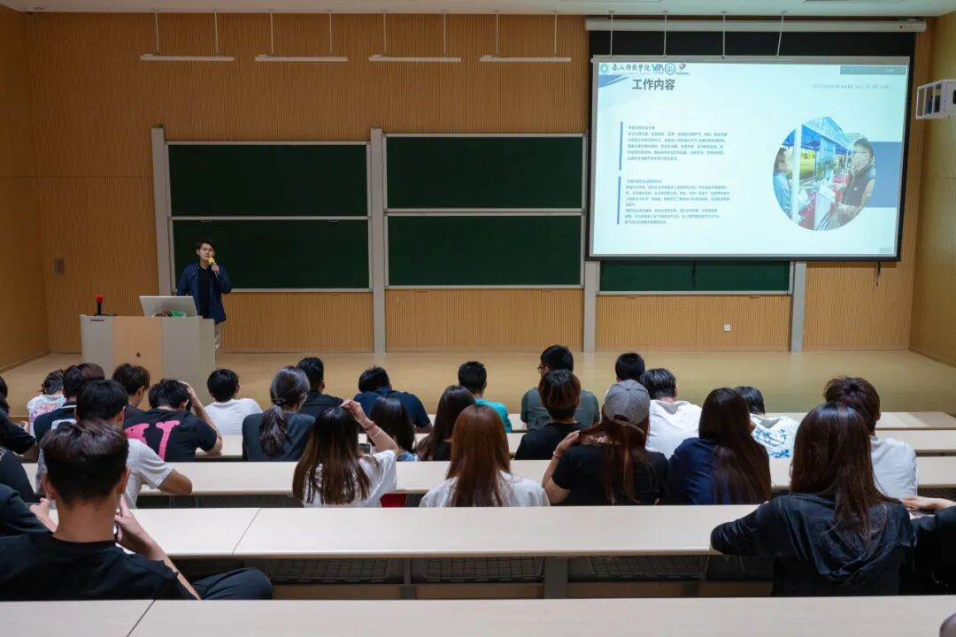 紧接着,邓琛学长结合自身在就创活动组织领域的实际案例,深入剖析了就创活动筹备、执行等关键环节的要点与技巧。他分享了如何成功策划多场大型校园招聘会,以及如何积极推动创业指导项目的经验,为同学们在就业创业之路上提供了有力支持。随后,邓琛学长继续分享了他在社团活动组织中的沟通协调经验。他提到,面对来自不同专业和年级的社团成员,高效沟通是组织活动的关键。通过讲述筹备社团文化节时的沟通实例,邓琛学长总结出“主动沟通、明确分工、及时反馈”的沟通秘诀,为同学们提供了实用的指导。