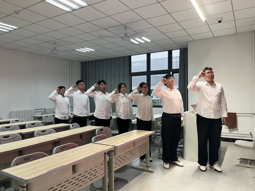 “我志愿加入中国共产党……”活动室里,即将离校的预备党员们佩戴党徽,在鲜红党旗下庄严宣誓。党支部严格遵循党员发展程序,为符合条件的党员举行转正仪式。这不仅是身份的转变,更是扛在肩上的责任。党员徽章戴在胸前,就要将“俯首甘为孺子牛”的为人民服务精神谨记心中,落到实处。这场仪式如同一把标尺,丈量着同学们预备期的成长足迹,也为党组织注入新鲜血液。